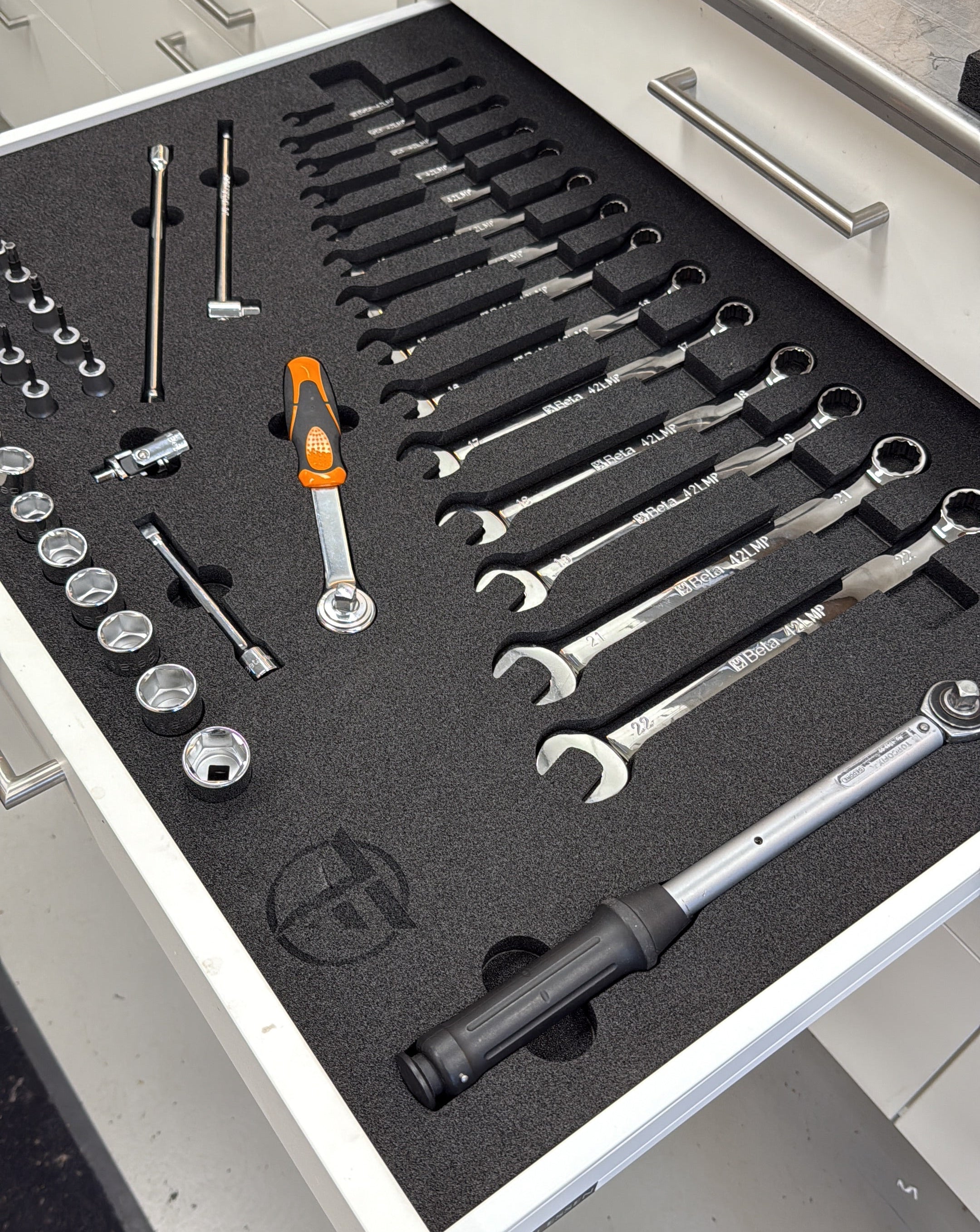 We design and cut custom foam inlays for motorsport toolboxes, perfectly fitted to your setup and workflow.